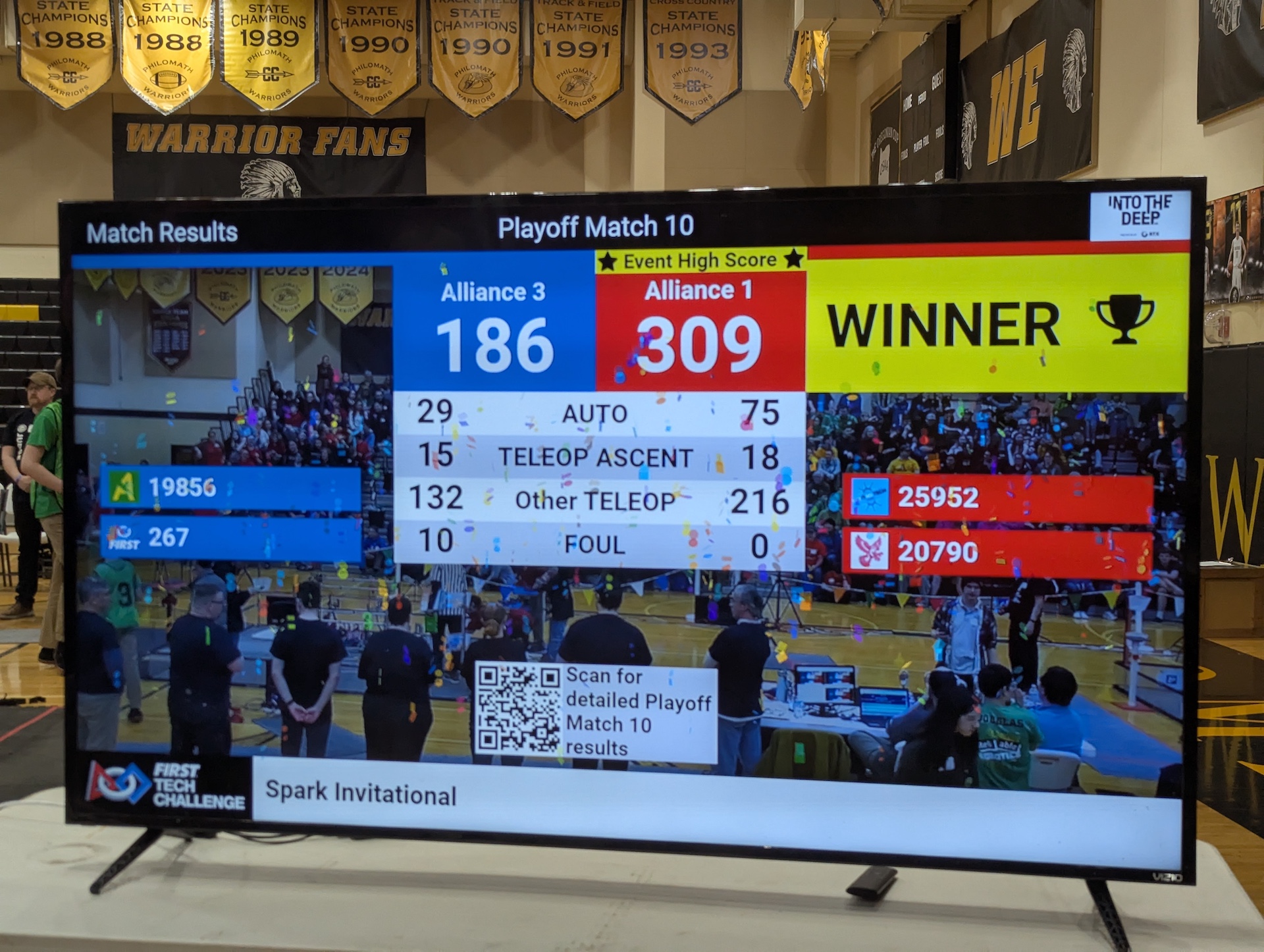 The 2024-25 season was a game-changer for our team. We decided to change the way in which we compete by participating in the local league meets, meaning we were competing at least 5 times a year instead of competing once. This gave us much more time to analyze strategies that work and iterate on our designs between the meets, while also helping us meet more teams in our community. The challenge this year was to grab samples (small rectangular prisms) from the “submersible” and to either place them in a basket or hang them from a bar as “specimen.” After the league meets, we still hadn’t won an event yet, but we still had a chance! We were invited to the Spark Invitational, where we scored the 8th highest score in Oregon (at the time) and won the event alongside our friends at Beyond Tech. We left the event with a second-place Inspire Award in hand and a spot at the Oregon FIRST® Championship. We ended this record-breaking season with an offensive power rating in the top 10% of teams across the globe!
